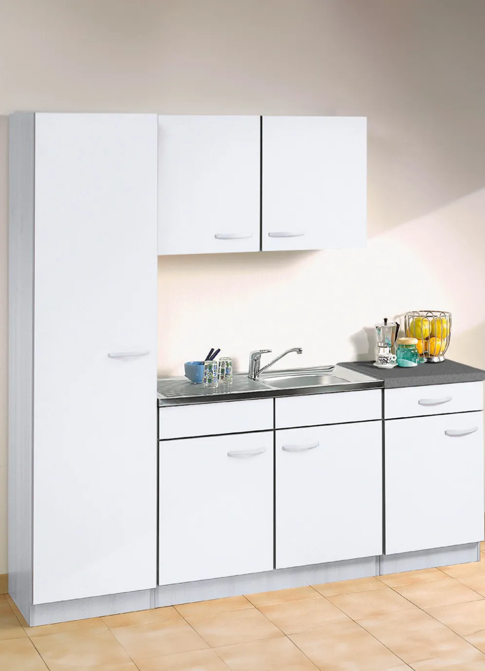 Küchenmöbel mit melaminharzbeschichteter Oberfläche. Hinter den Türen je 1 Einlegeboden. Mit Aufbau-Anleitung