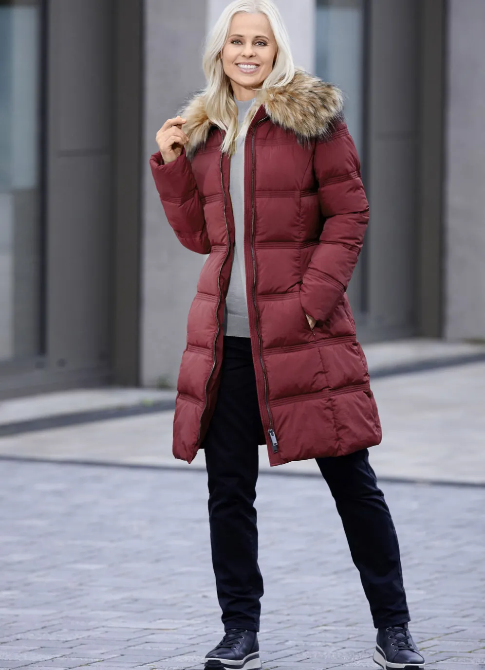 Mantel mit abnehmbarem Kunstpelz-Kragen
