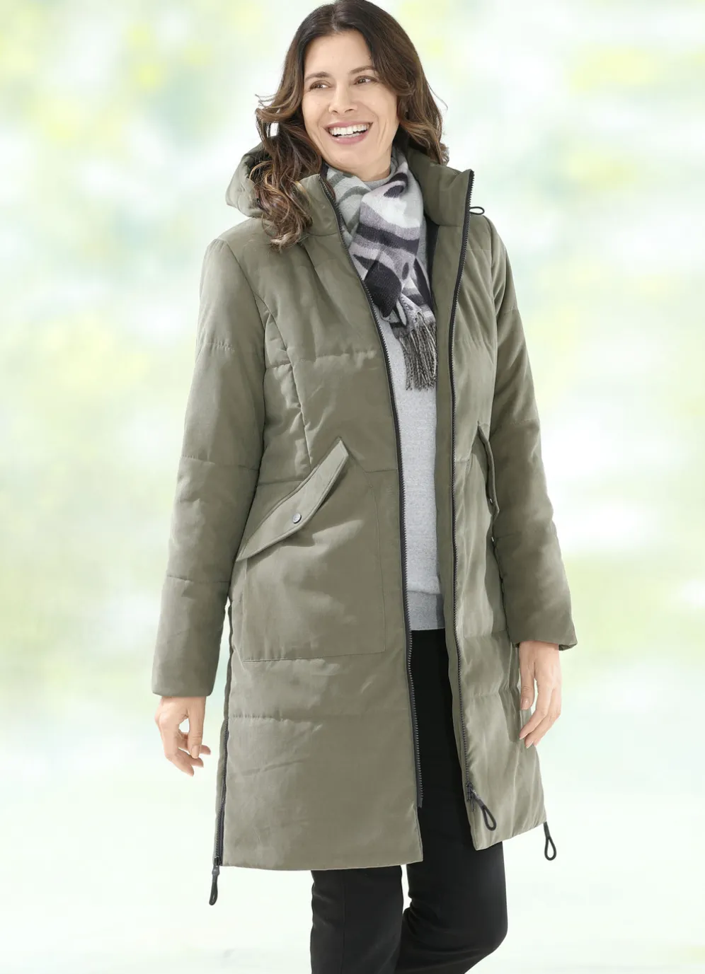 Kurzmantel mit Peach-Touch-Effekt in Khaki und in Größe 38.