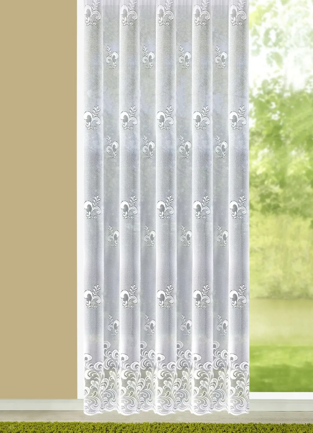 Dieser Langstore mit praktischem Universalschienenband sorgt für ein behagliches Ambiente in Ihrem Zuhause. Mit gebogten Abschlüssen. Die Qualität: Jacquard aus 100% Polyester