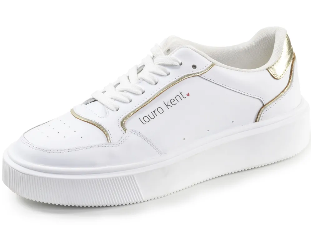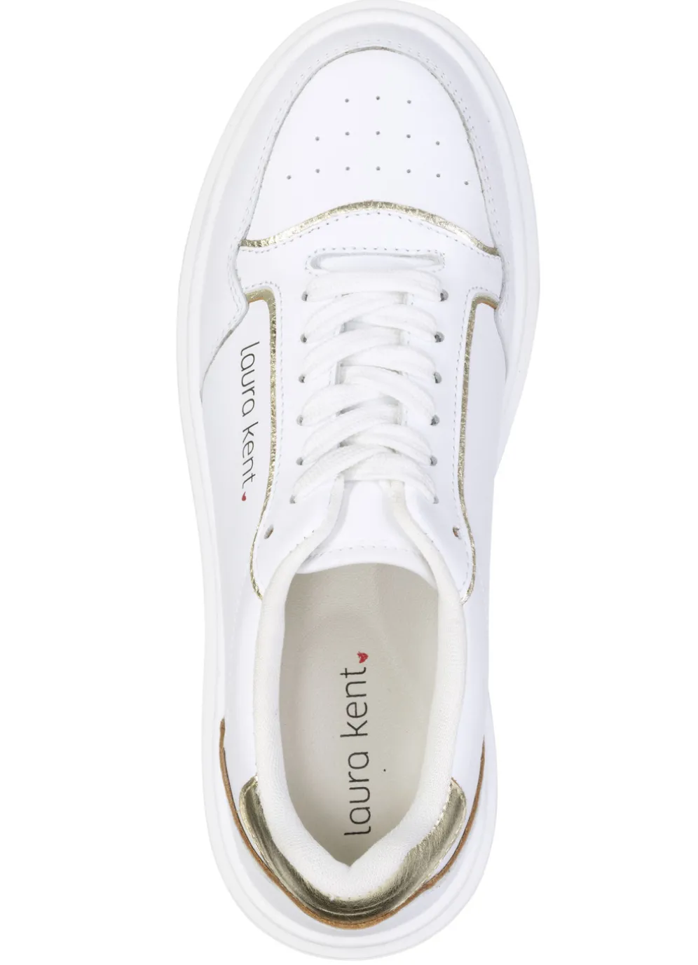 Sneaker von LAURA KENT, aus Nappaleder, mit goldenen Kontrast-Besätzen: Weite H, Schnürung, Textilfutter, herausnehmbares Fußbett, leichte TR-Laufsohle mit Plateau sowie 10 mm Keilabsatz
