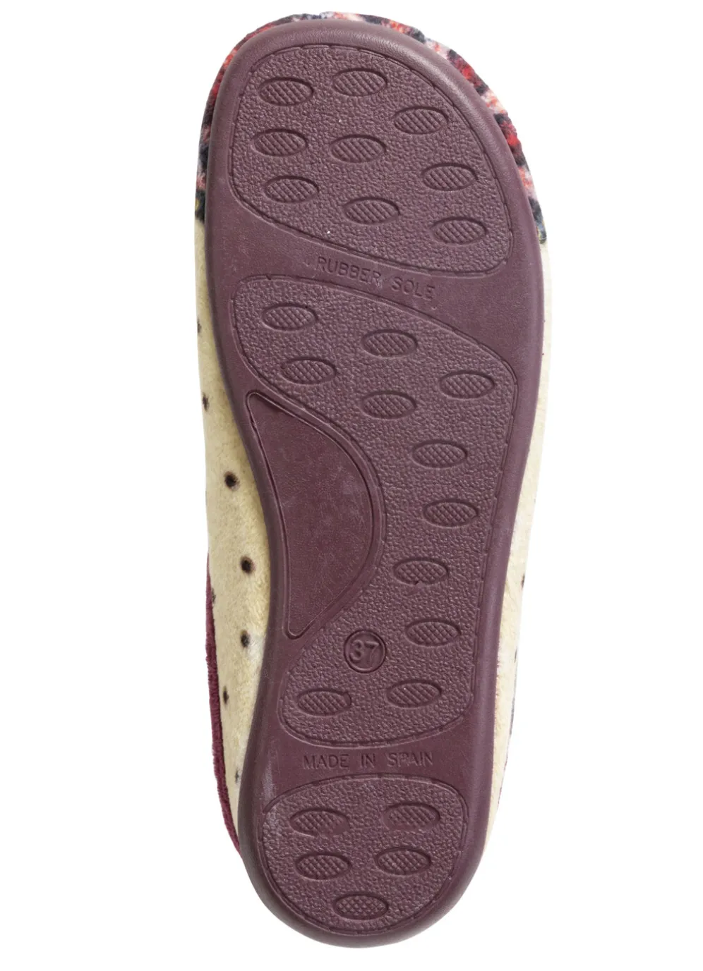 Laurina, klassische Damen-Hausschuhe, mit herausnehmbarem Fußbett in Ecru-Bunt und in Größe 36.