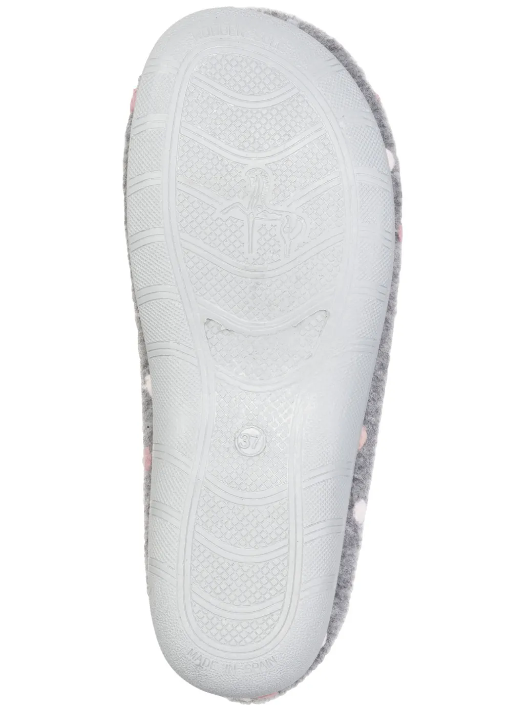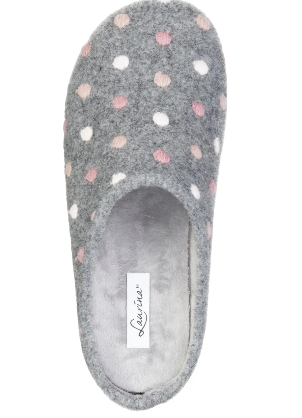 Laurina, klassische Damen-Hausschuhe, mit Pünktchen-Stickerei in Grau und in Größe 38.