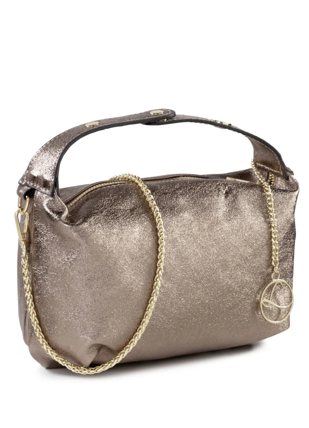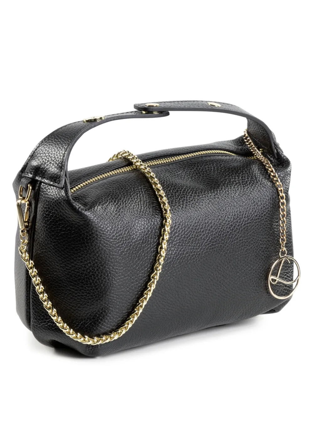 Trendige „Laurina“-Tasche aus genarbtem Kalb-Nappaleder: je ein Haupt- und Innenfach mit Reißverschluss, Textilfutter. Ein verstellbarer Tragegriff mit Magnetverschluss ca. 21-27 cm und ein abnehmbarer Ketten-Umhängeriemen ca. 112 cm Gr: 23x15x11 cm