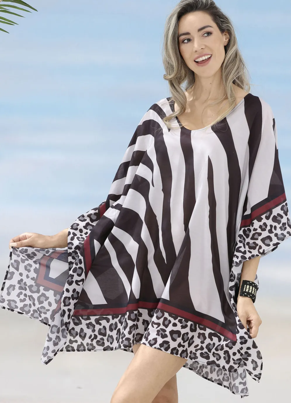 Traumhafte, leicht transparente „Laurina“-Tunika in Creme-Schwarz-Bunt. Länge ca. 88 cm.