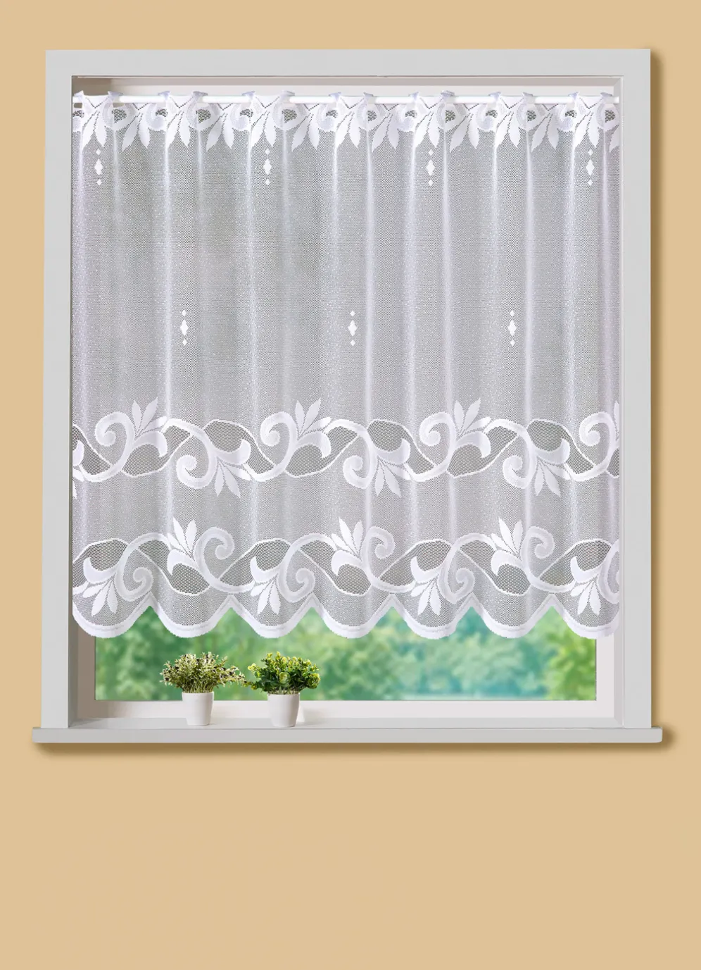 Kombifreundliche, leichte Fensterdekoration. Mit schönen Blattornamenten. Jacquard aus 100% Polyester