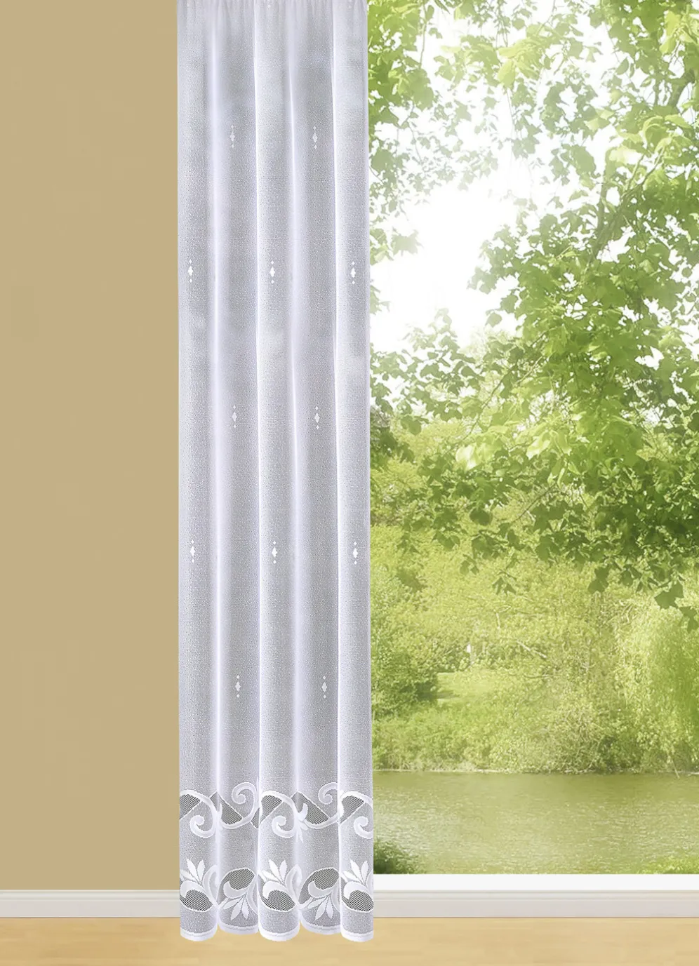 Kombifreundliche, leichte Fensterdekoration. Mit schönen Blattornamenten. Jacquard aus 100% Polyester