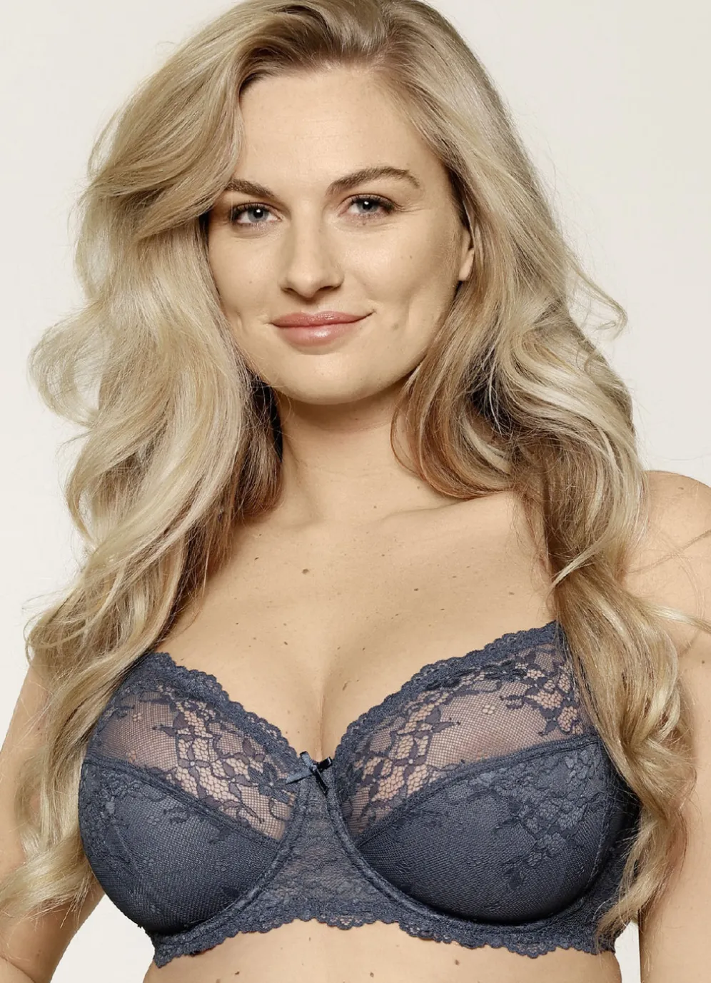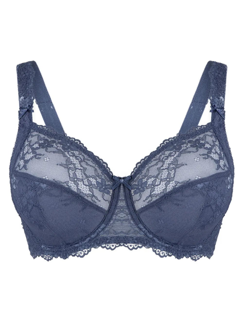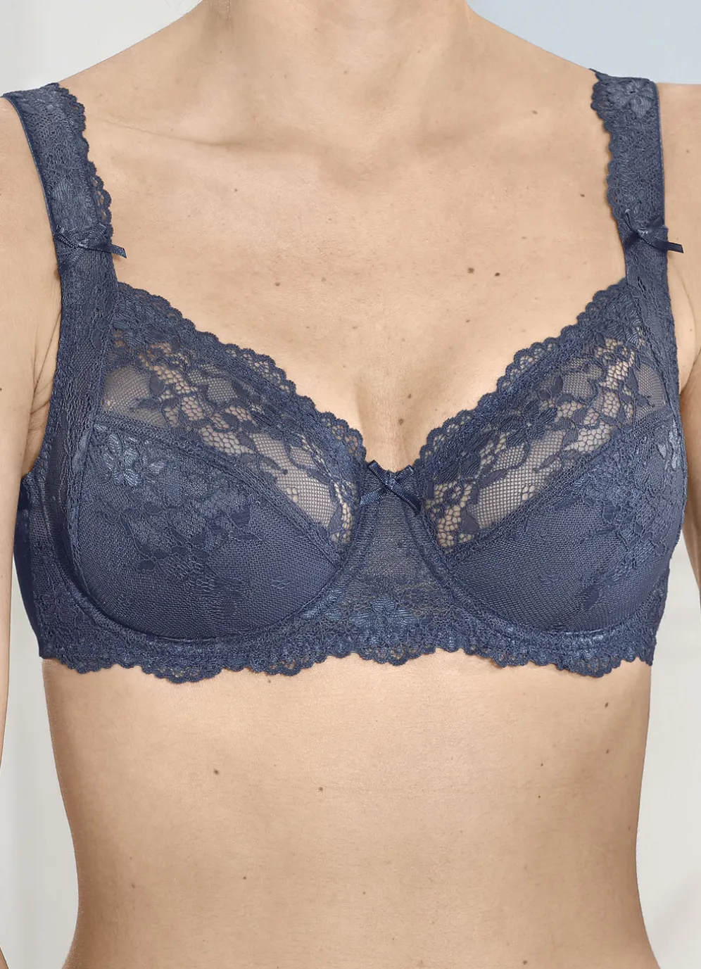 LingaDore Bügel-BH mit elastischer Spitze in Cup B, in Indigoblau sowie in Größe 100.