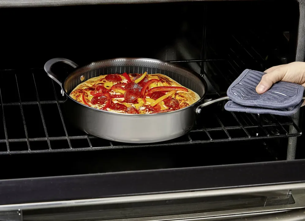Der dreilagige Pfannenkörper besteht aus einem leichten Aluminiumkern zwischen zwei Lagen rostfreiem Edelstahl, die eine schnelle und gleichmäßige Wärmeverteilung garantieren. Jedes einzelne Teil der Livington Titan Pan Multipfanne 24 cm ist robust, langlebig, pflegeleicht und obendrein sogar spülmaschinengeeignet. Übrigens: Diese revolutionäre Bratpfanne von Livington hält sogar Ihren Metall-Küchenhelfern stand!