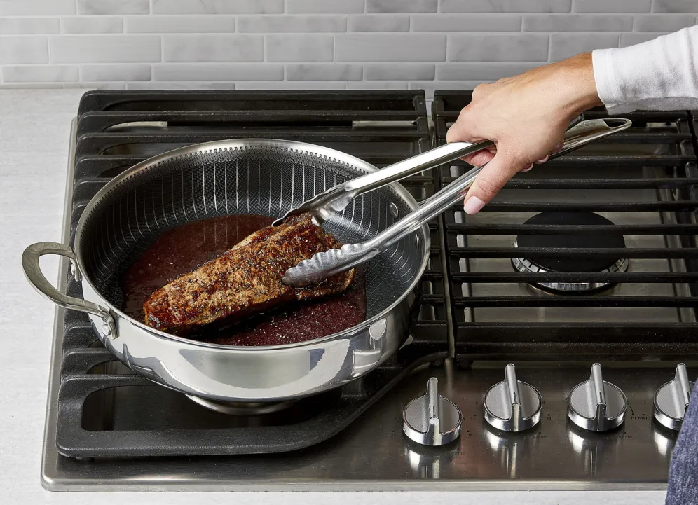 - Edelstahlpfanne mit Antihaftbeschichtung