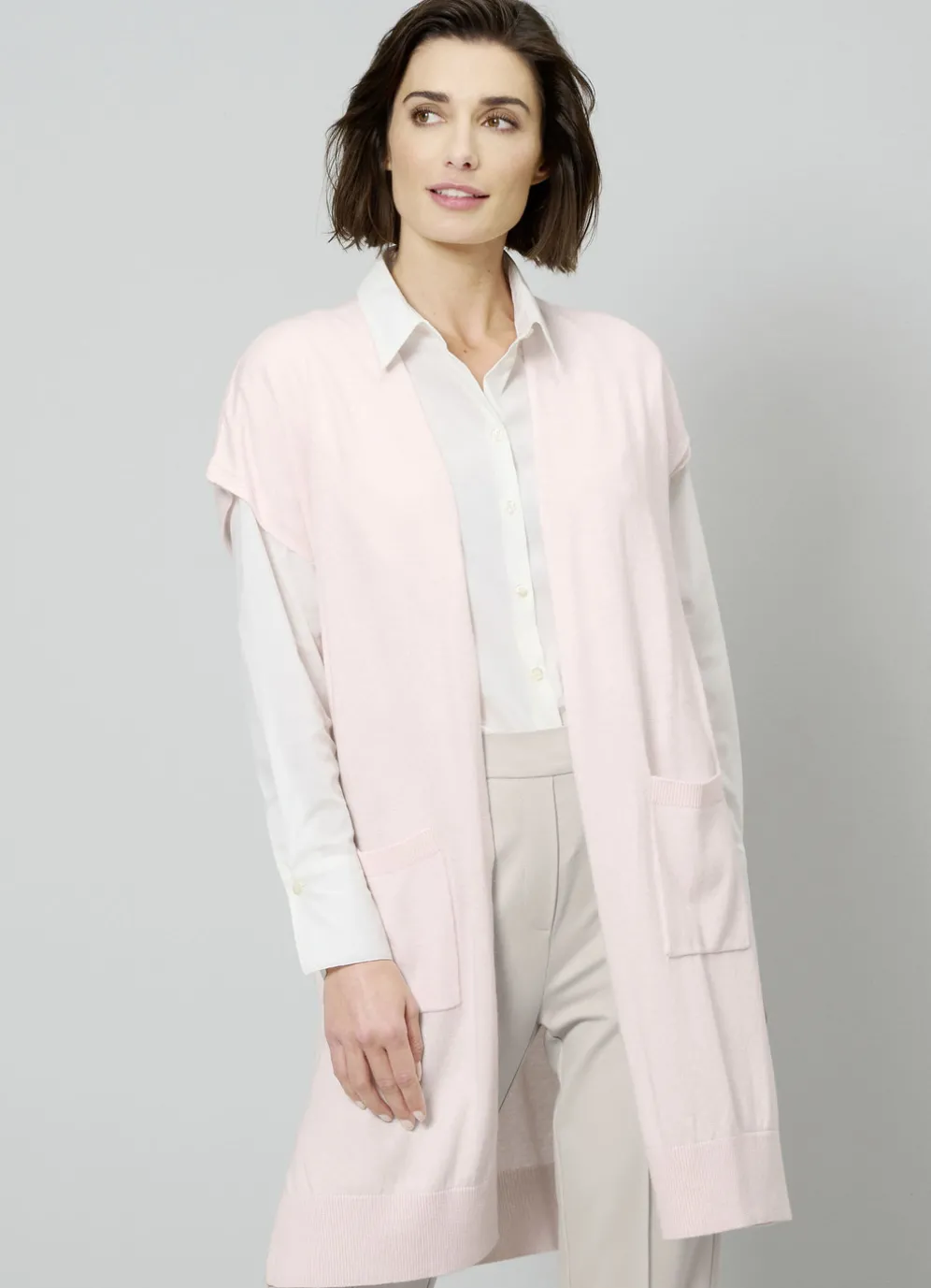 Long-Strickweste mit Kaschmir in Rosé und in Größe 42.