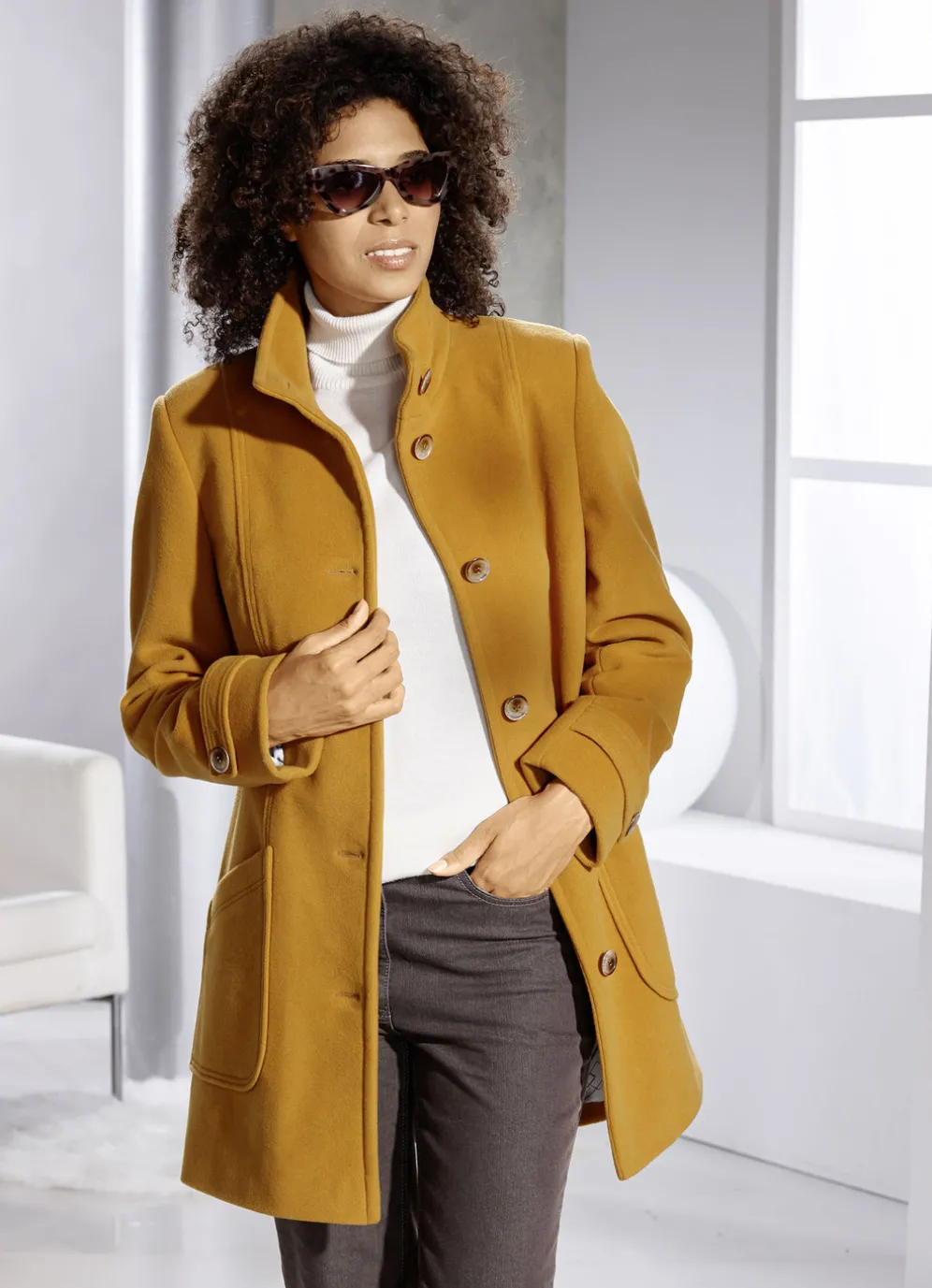 Longjacke mit hohem Tragekomfort in Safran und in Größe 20.