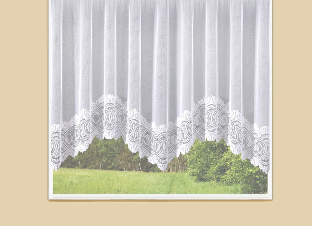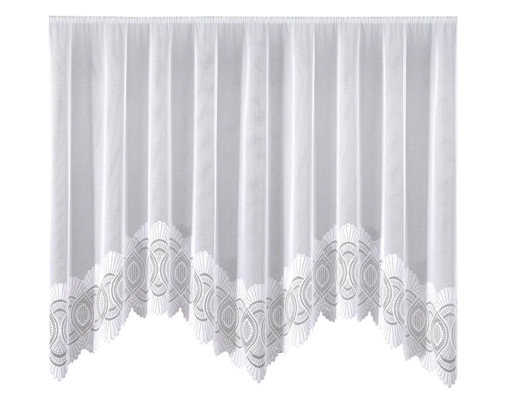 Herrlicher M-Bogenstore für Ihr Zuhause. Mit gebogtem Abschluss und Universalschienenband gearbeitet. Die Qualität: Jacquard aus 100% Polyester