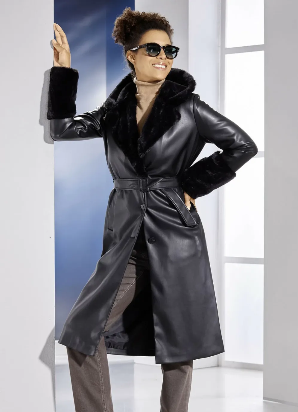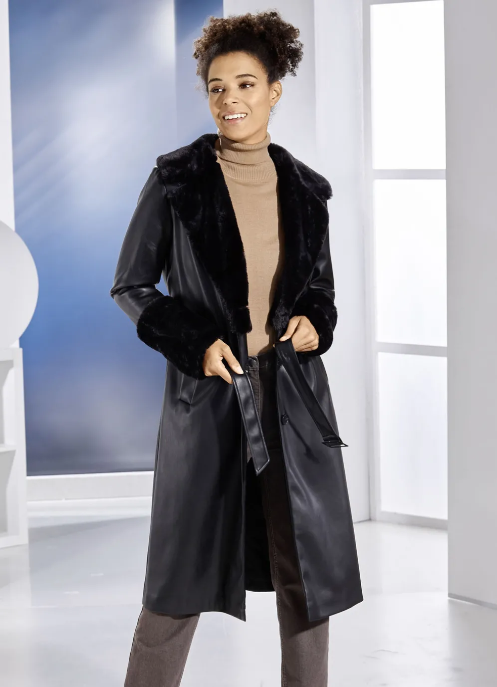 Mantel mit Kunstpelz-Besatz an Kragen und Ärmeln