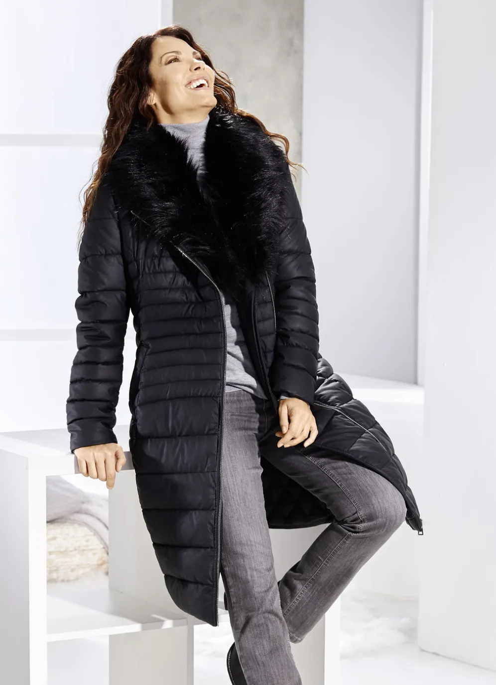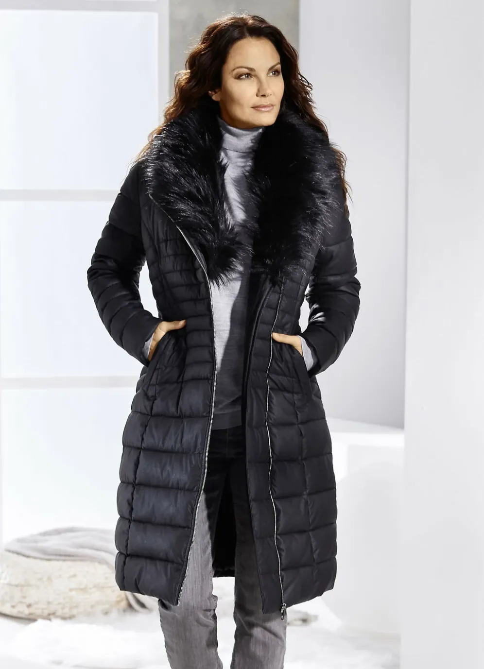- abnehmbarer Kunstpelz-Besatz am Kragen