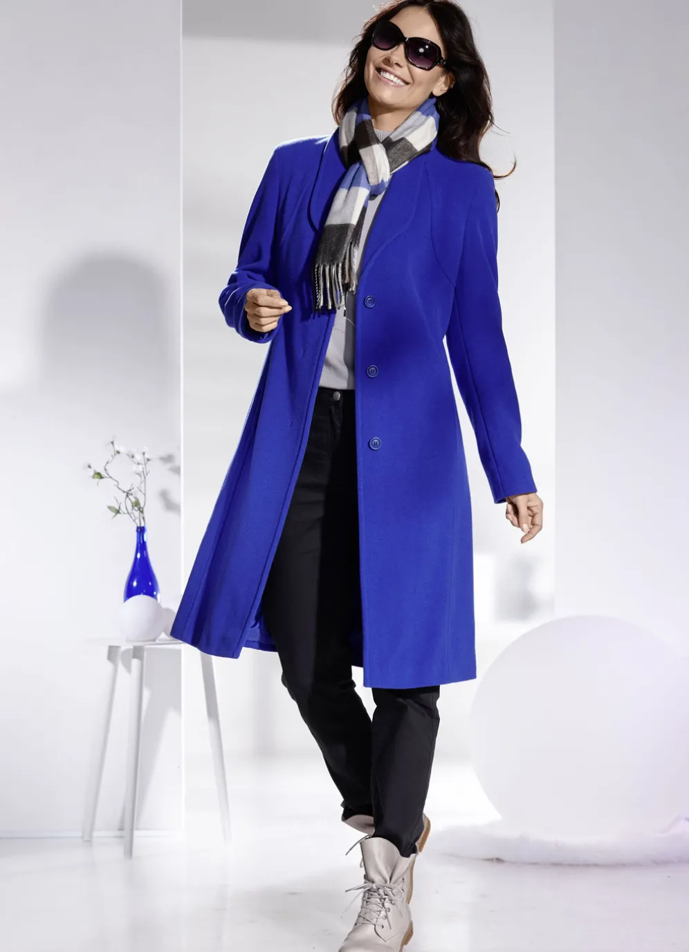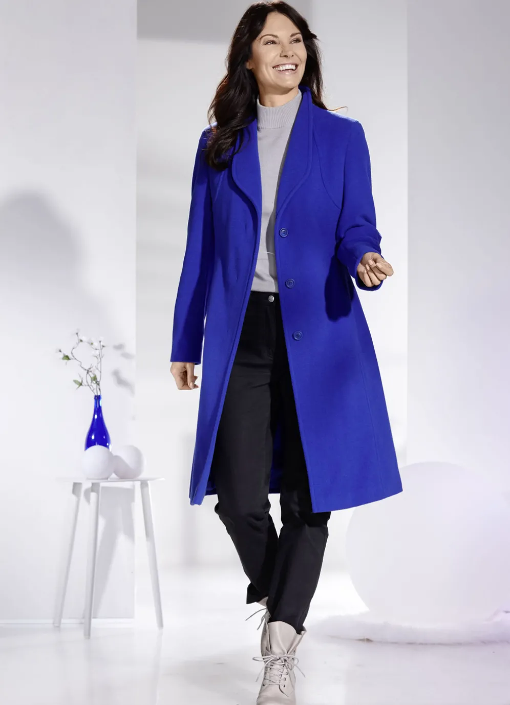 Mantel mit elegant verdeckter Knopfleiste in Royalblau und in Größe 40.