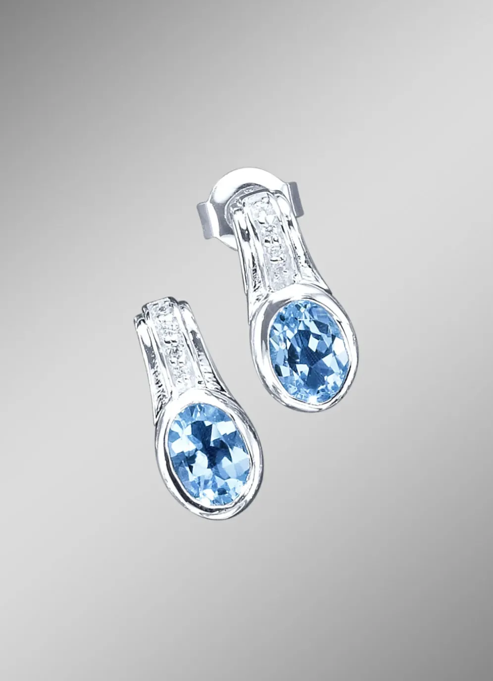 Massive Ohrstecker mit Blautopas und Zirkonia in der Legierung Silber 925/- fein.