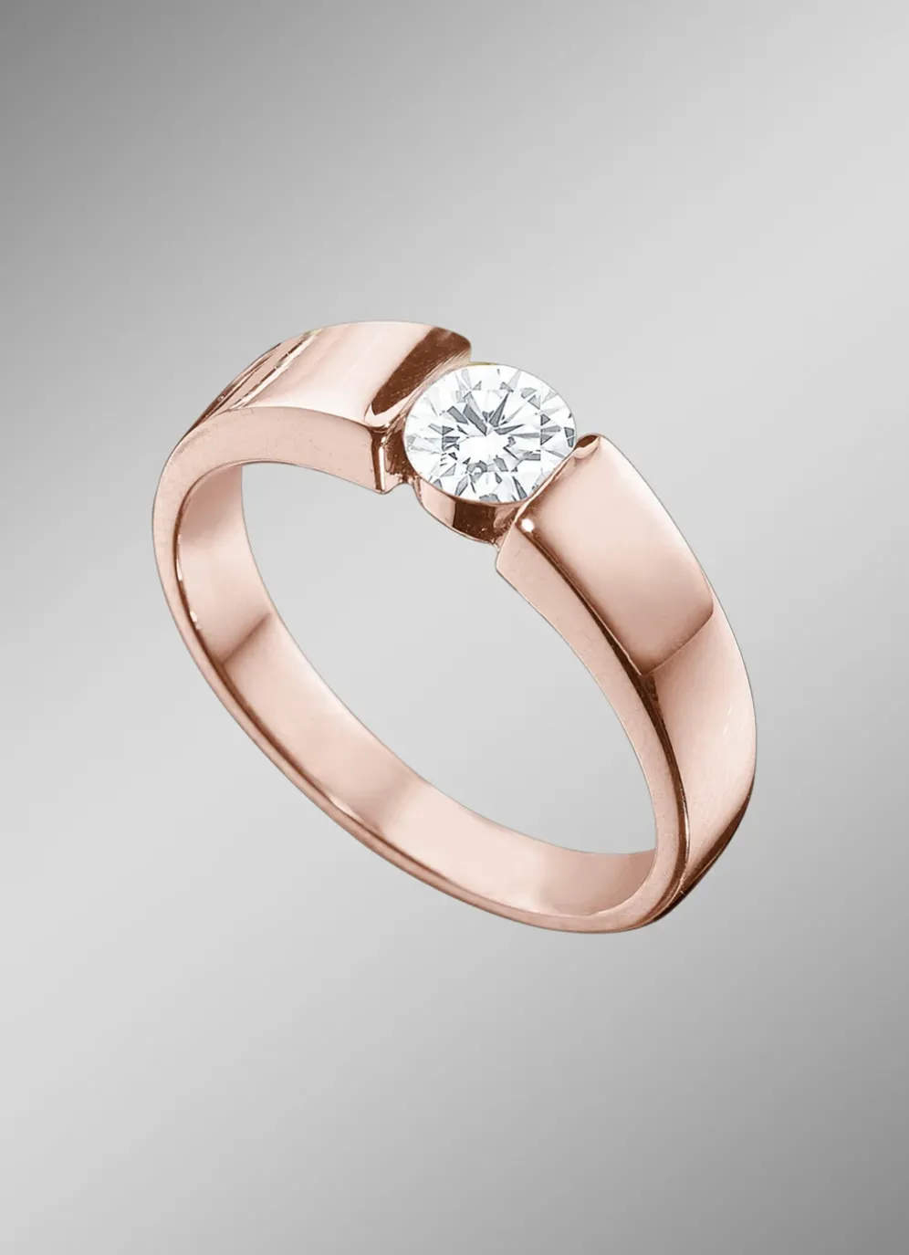Massiver Damenring in Roségold mit Brillant, mit 0,25 ct., in der Legierung Roségold 585/- fein sowie in Größe 160.