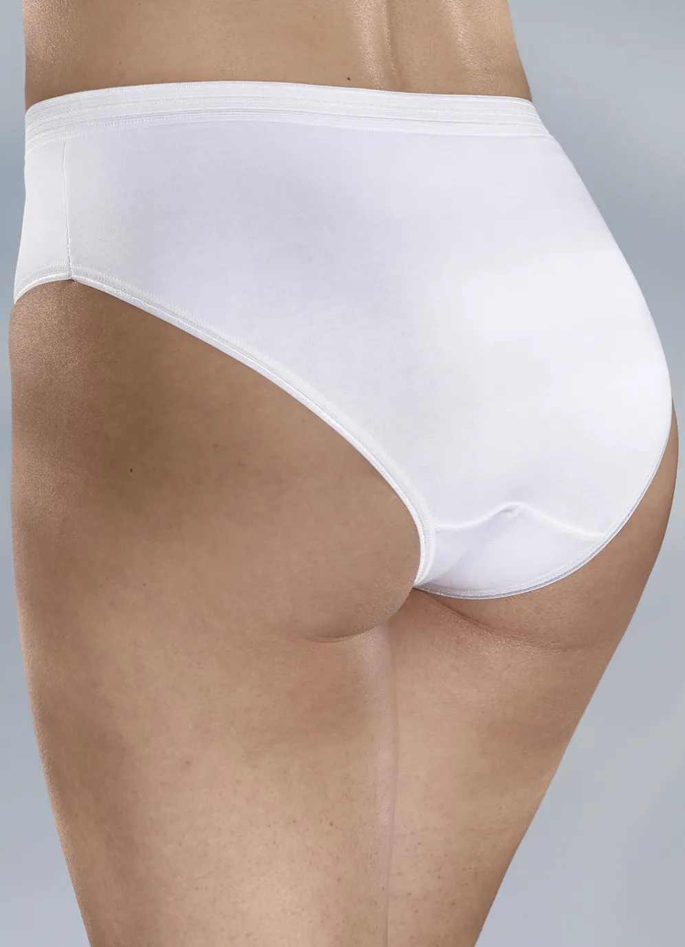Mehrfackpack Slips mit glänzenden Abschlüssen in der Ausführung Fünferpack Slips, in Weiss sowie in Größe 36.