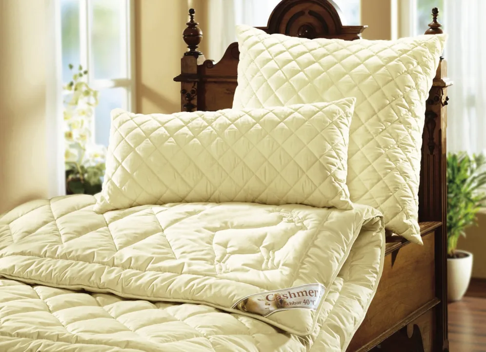 Füllung aus Kaschmirhaar und Seide (60% Kaschmir und 40% Seide), Bezug aus Baumwoll-Perkal (100% Baumwolle). Kaschmir ist ideal für alle, die schnell frieren. Optimal ergänzt wird der Schlafkomfort durch die Seidenfüllung. Ihre temperatur- und feuchtigkeitsausgleichende Wirkung ist einzigartig. Sie fühlt sich sehr angenehm weich an und wird niemals klamm. Waschbar bis 30 °C