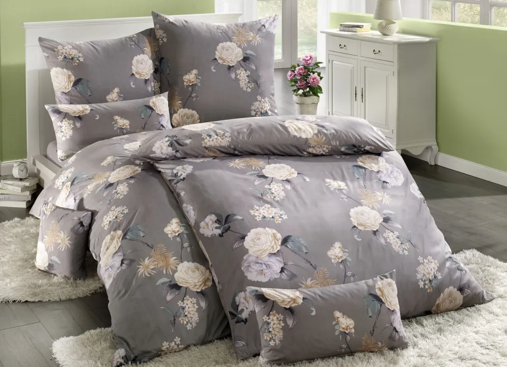 Microfaser Bettwäsche-Garnitur mit Reißverschluss in Größe 912 (10-teiliges Sparset) und in Grau.