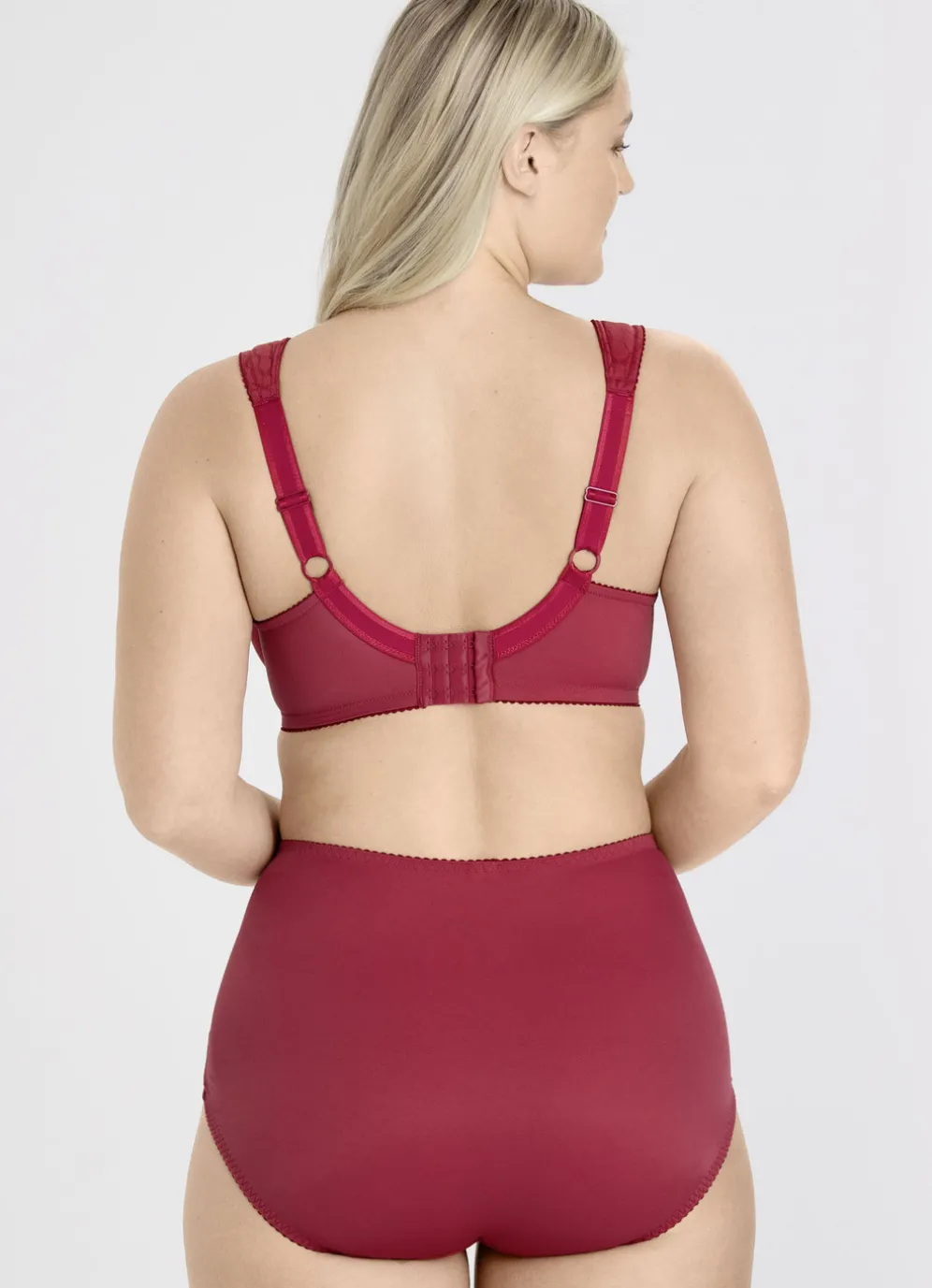 „Miss Mary“-Bügel-BH mit strukturiertem Vorderteil, Elastikspitze in den Obercups sowie weich gepolsterten, seitlichen Blenden, die in die verstellbaren Stretchträger übergehen.