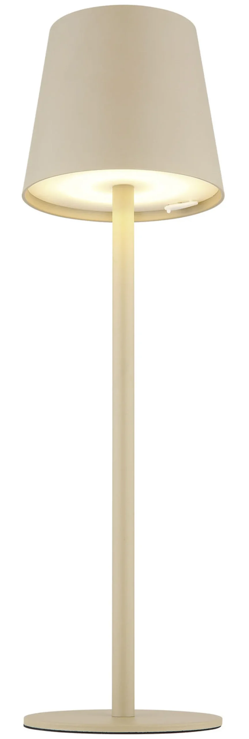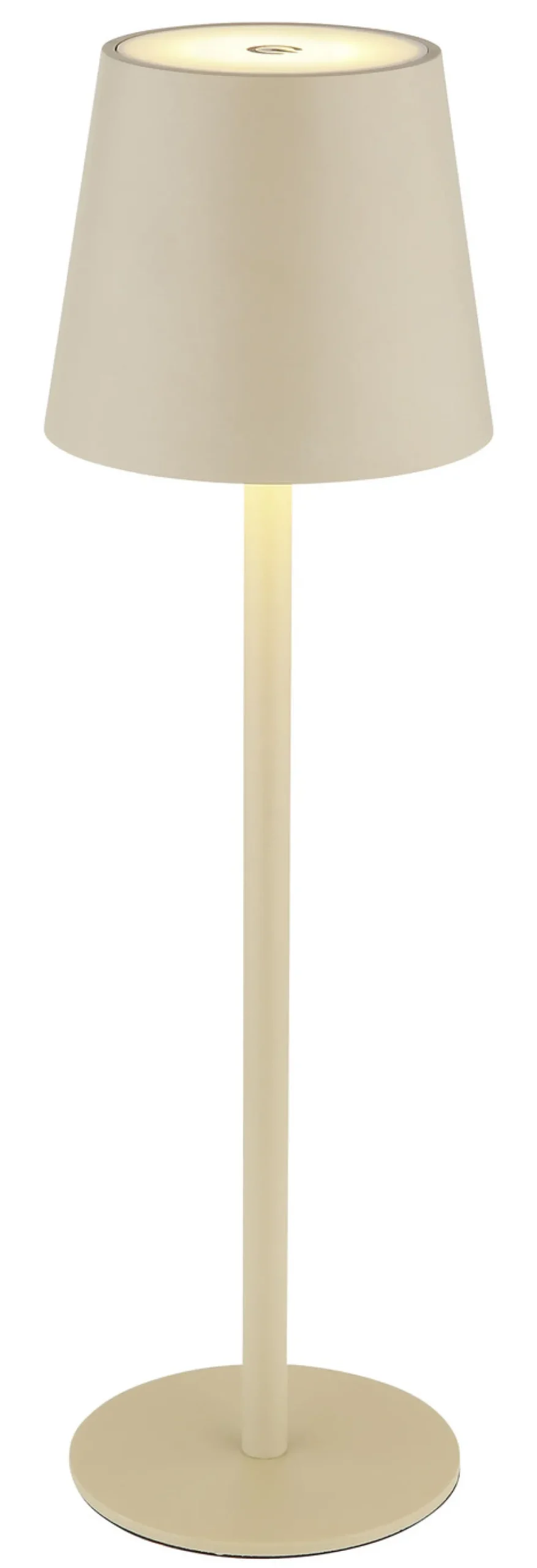 Interessante und moderne Tischleuchte für den Innen- und Außenbereich. Ganz zeitgemäß wird diese mit einem USB-Ladekabel geliefert. Dank stufenlosen Touchdimmer ist die Helligkeit der Leuchte regulierbar. Aus Kunststoff gefertigt. Maße: Höhe 36 cm, ø 11 cm.