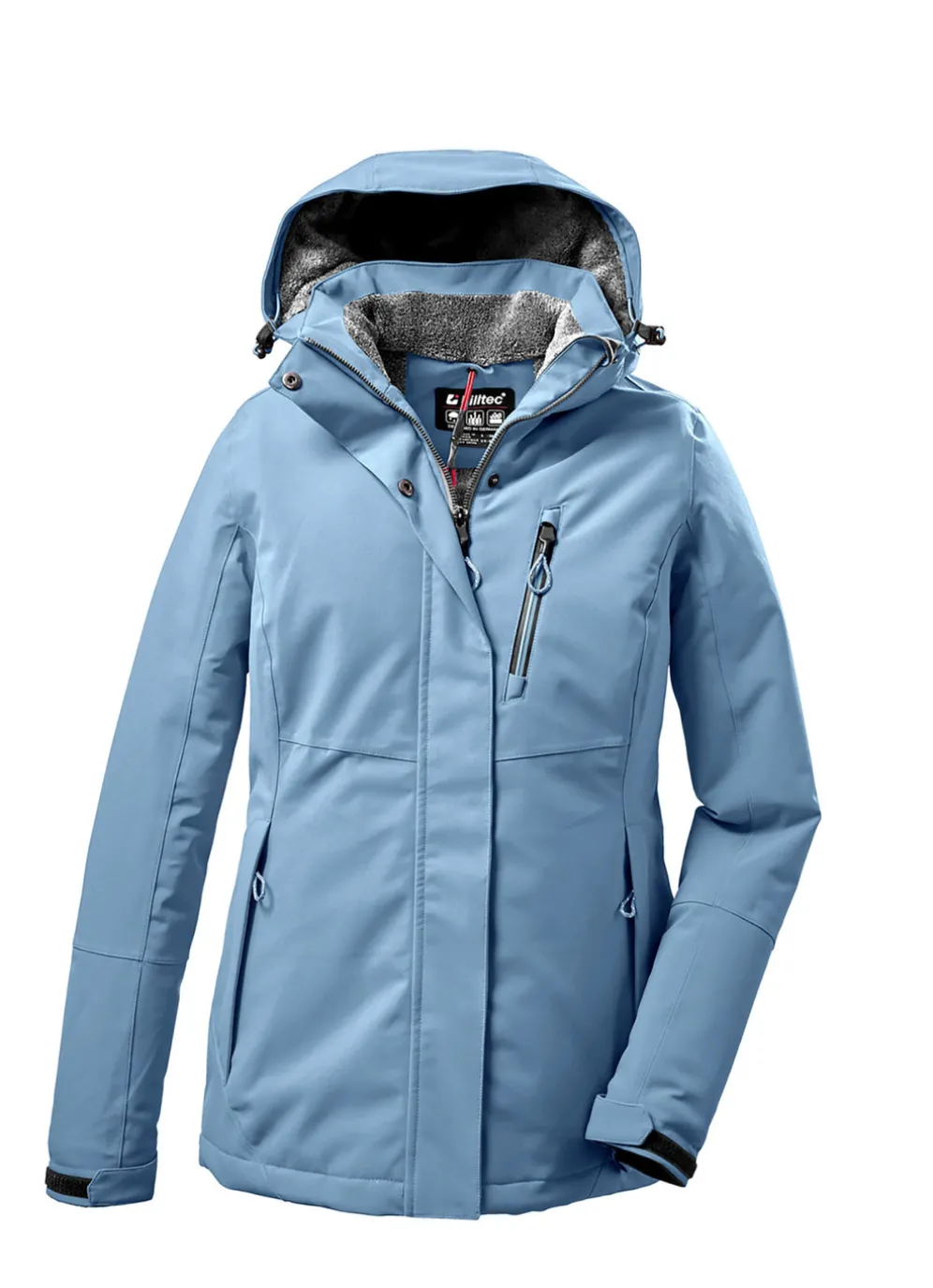 Details: abzippbare, verstellbare Kapuze, RV mit Kinnschutz, 2 RV-Taschen, 1 Brusttasche, verstellbare Ärmelbündchen, Innentasche, Saumgummizug mit Stopper sowie tragangenehmer Teddyfleece an Kapuze und Innenkragen.