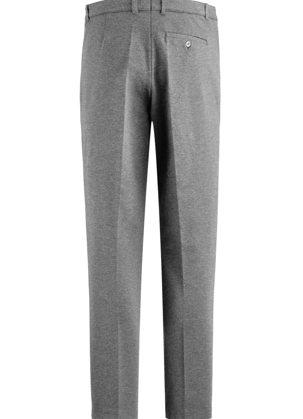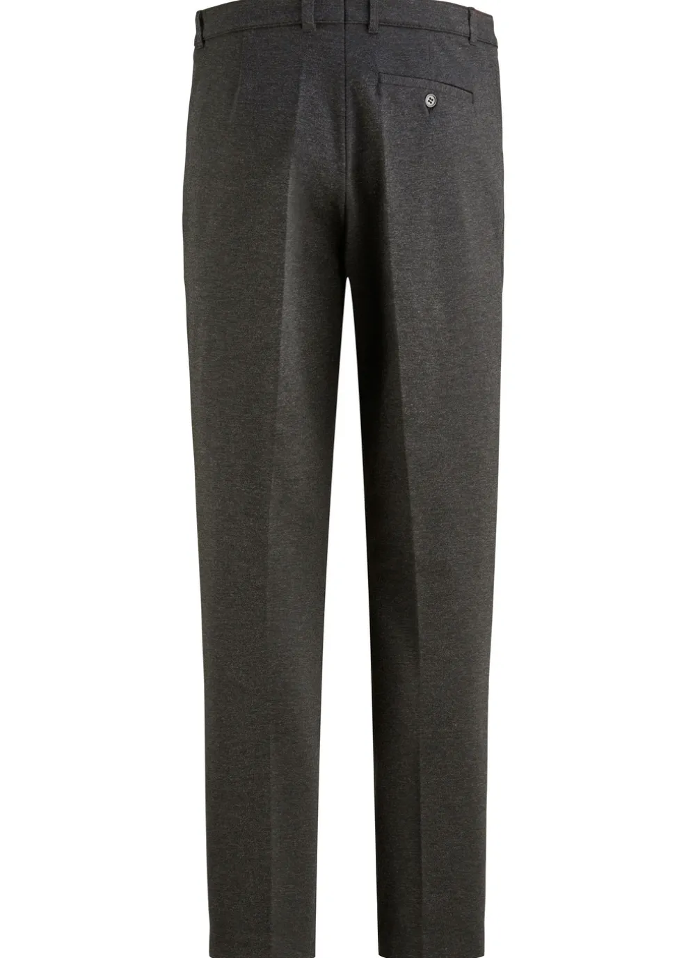 Modische Hose mit Dehnbund, Seitentaschen mit Reißverschluss sowie Gesäßpaspeltasche mit Knopfverschluss.