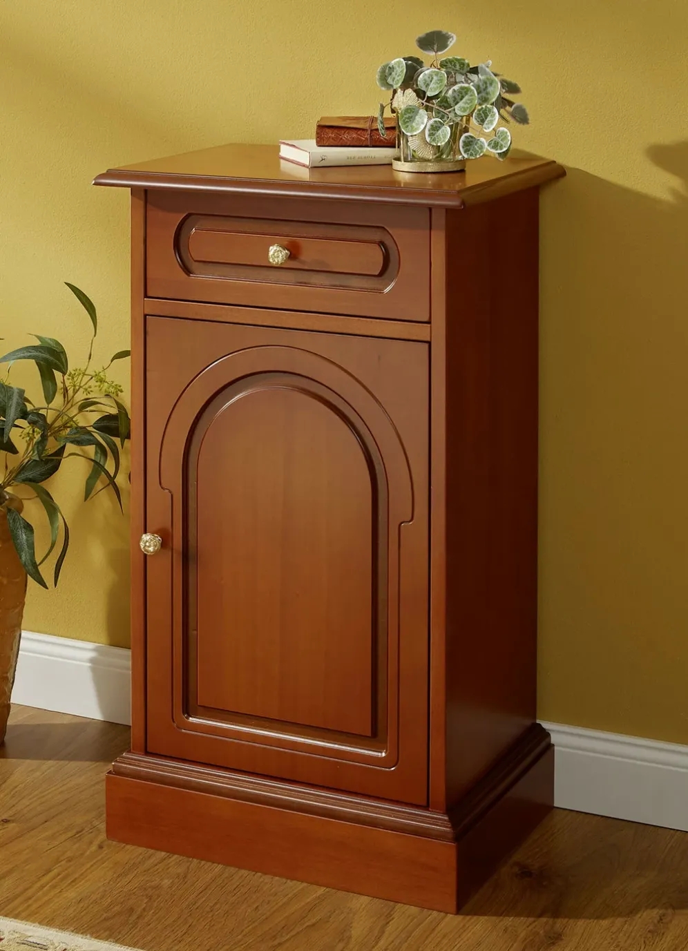 Möbelserie mit typisch italienischem Flair in der Ausführung Kommode, 1-türig und in Kirschbaum.