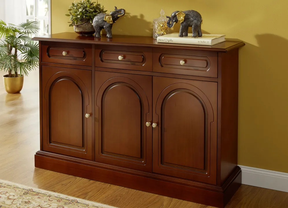 Attraktive Möbelserie mit typisch italienischem Flair! Türen und Schubladen mit Knopf-Griffen aus Metall. Die Lieferung erfolgt aufgebaut.