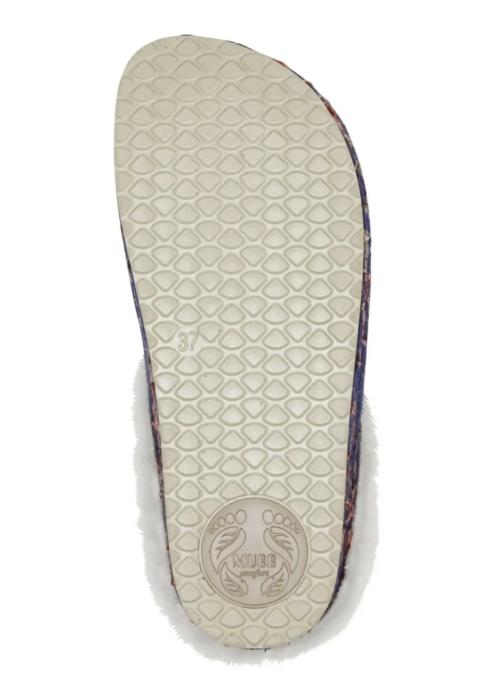 Mubb Wollfilz-Pantoffel mit bunter Blüten-Stickerei in Marine-Ecru und in Größe 40.