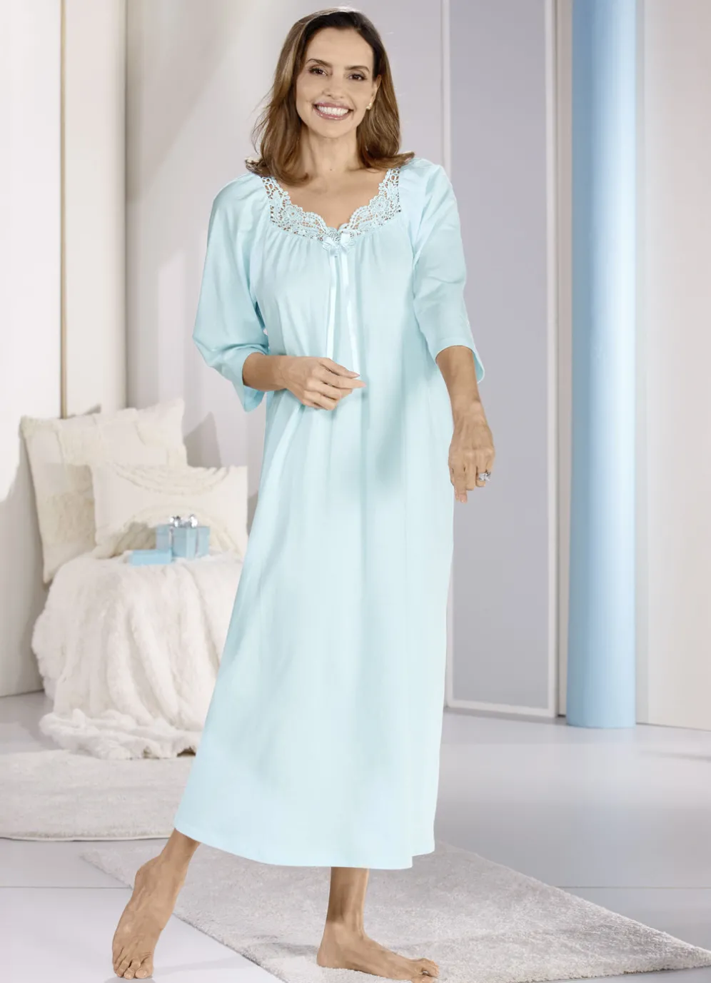 Nachthemd, knöchellang und Stickereispitze in Gletscher und in Größe 40.