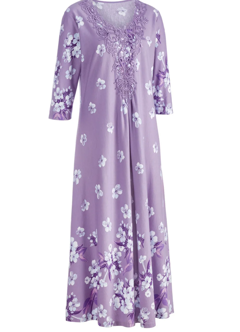 Nachthemd von „Laurina“ mit Motivspitze am Ausschnitt in Lila und in Größe 38.