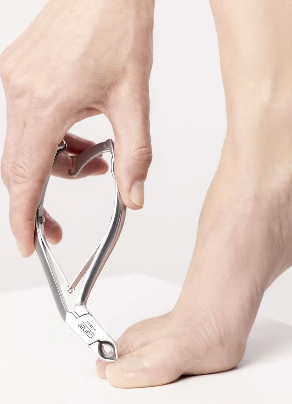 Nagelzange mit einer runden um den Nagel angepassten Form für exaktes Schneiden. Dank des gebogenen Griffs verlängert sich die Reichweite um 6 cm im Vergleich zu einer Zange mit geradem Griff. Dies erleichtert die Anwendung, insbesondere bei eingeschränkter Beweglichkeit. Handgeschmiedete Gelenke. Genau aufeinander abgestimmt, von Hand geschliffene Schneidflächen. Hygienisch und antiallergen aufgrund rostfreiem Edelstahl. Auch für Linkshänder geeignet. Maße: L14xB5xH1,5 cm.