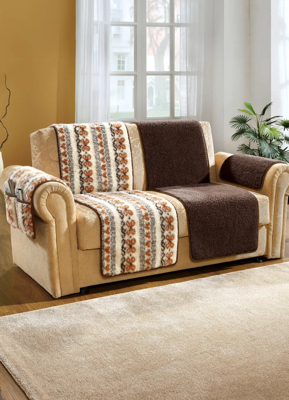 Herrlich naturnahe Wohnaccessoires aus 100% Schafschurwolle im Flor. Mit Bandeinfassung. Handwäsche bis 30 °C. Armlehnenschoner jeweils mit praktischen Taschen. Nach Öko-Tex Standard 100