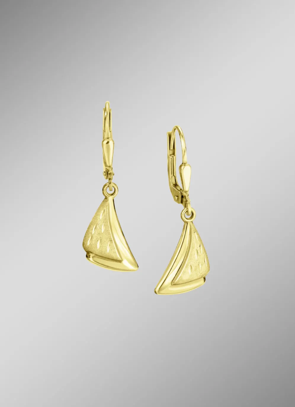 aus feinstem 585er oder 375er Gold. Diese 28 mm langen Ohrringe vereinen glänzende und mattierte Oberflächen, die einen faszinierenden Kontrast schaffen. Der sichere Brisurverschluss sorgt für einen hohen Tragekomfort. Perfekt für besondere Anlässe oder um Ihren Alltag mit einem Hauch von Luxus zu bereichern.