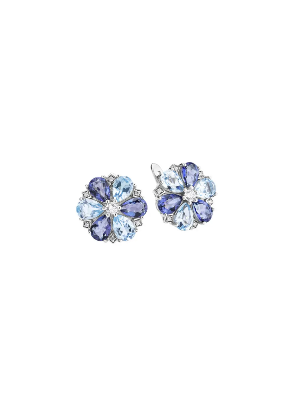 Tauchen Sie ein in die Welt der Eleganz mit diesen bezaubernden Ohrringen im Blumendesign. Gefertigt aus Silber 925/- fein, vereinen sie die funkelnde Schönheit von echtem Weißtopas und behandeltem Blautopas. Mit einem Durchmesser von 17 mm und einem praktischen Klappscharnier sind diese Ohrringe nicht nur ein optisches Highlight, sondern auch besonders komfortabel zu tragen. Perfekt, um jedem Outfit einen Hauch von Raffinesse und Glamour zu verleihen.