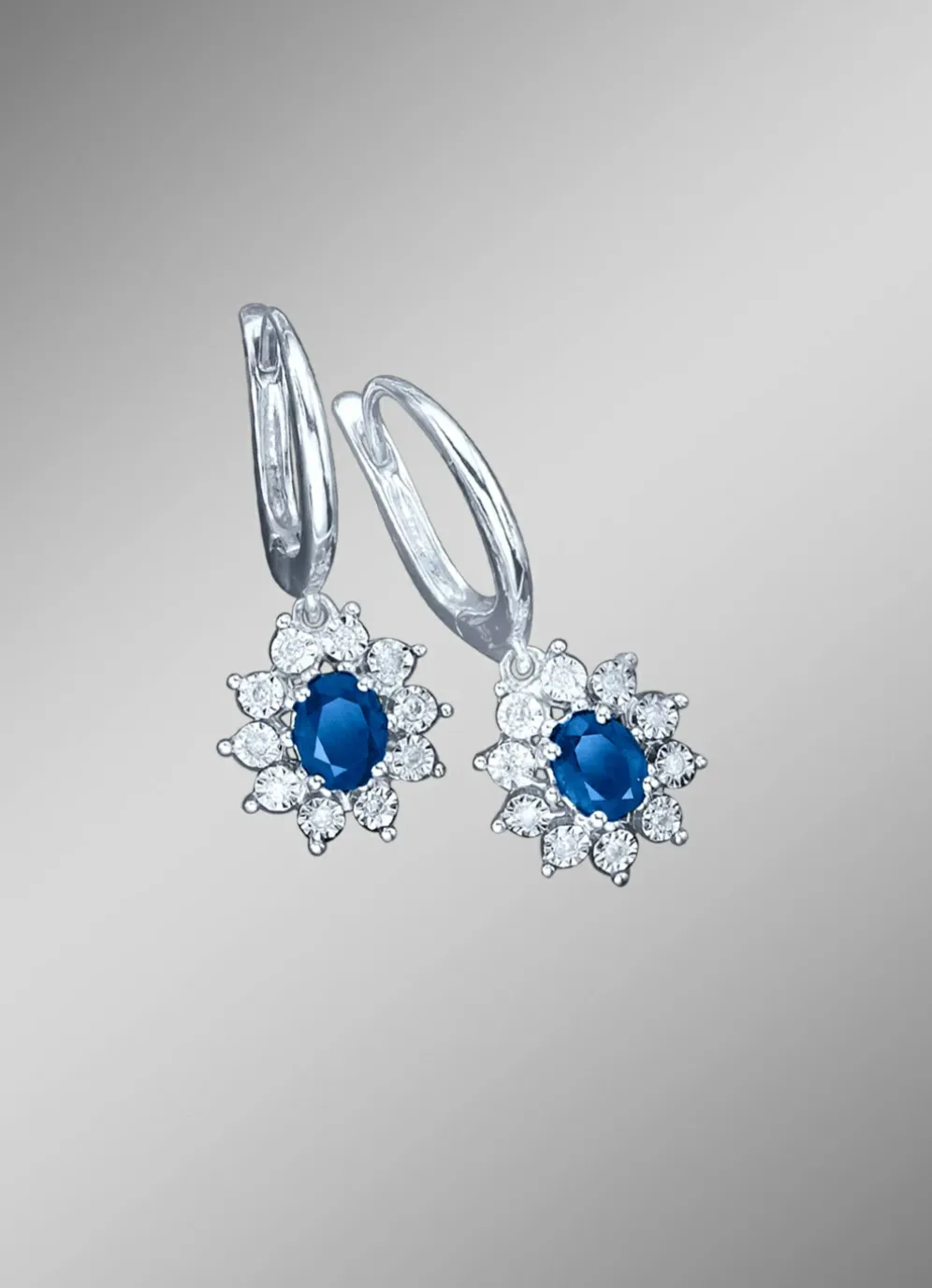 Ohrringe mit echt Safir und Diamanten in der Legierung Weißgold 585/- fein.