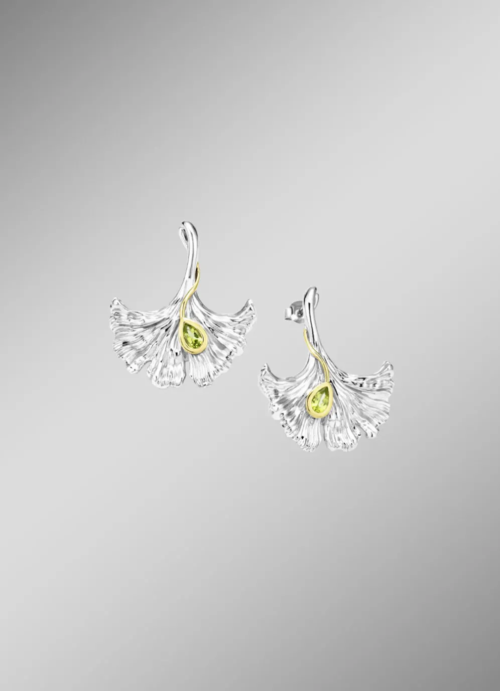 Tauchen Sie ein in die Welt der Eleganz mit diesen Ginkgoblatt-Ohrsteckern. Diese exquisiten Ohrstecker, gefertigt aus Silber 925/- fein und in einem faszinierenden Bicolor-Design, werden von echten Peridoten veredelt und verleihen Ihrem Look einen Hauch von natürlichem Glanz. Mit ihren beeindruckenden Maßen von 30 x 25 mm sind diese Ginkgoblatt-Ohrstecker ein wahres Statement und fangen die Schönheit der Natur in einem eleganten Schmuckstück ein.