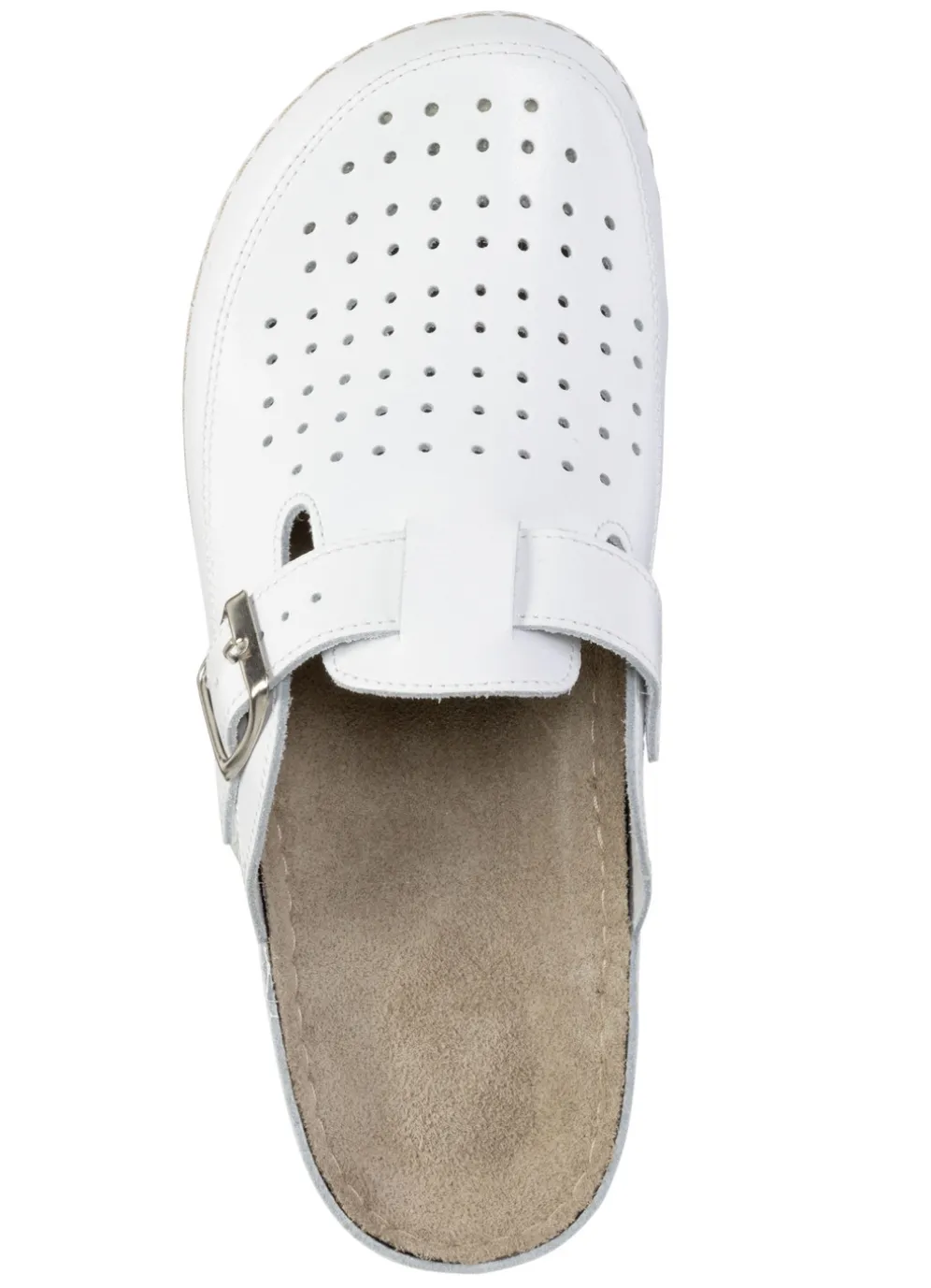 Pantolette aus Nappaleder mit luftiger Perforation in Weiss und in Größe 41.