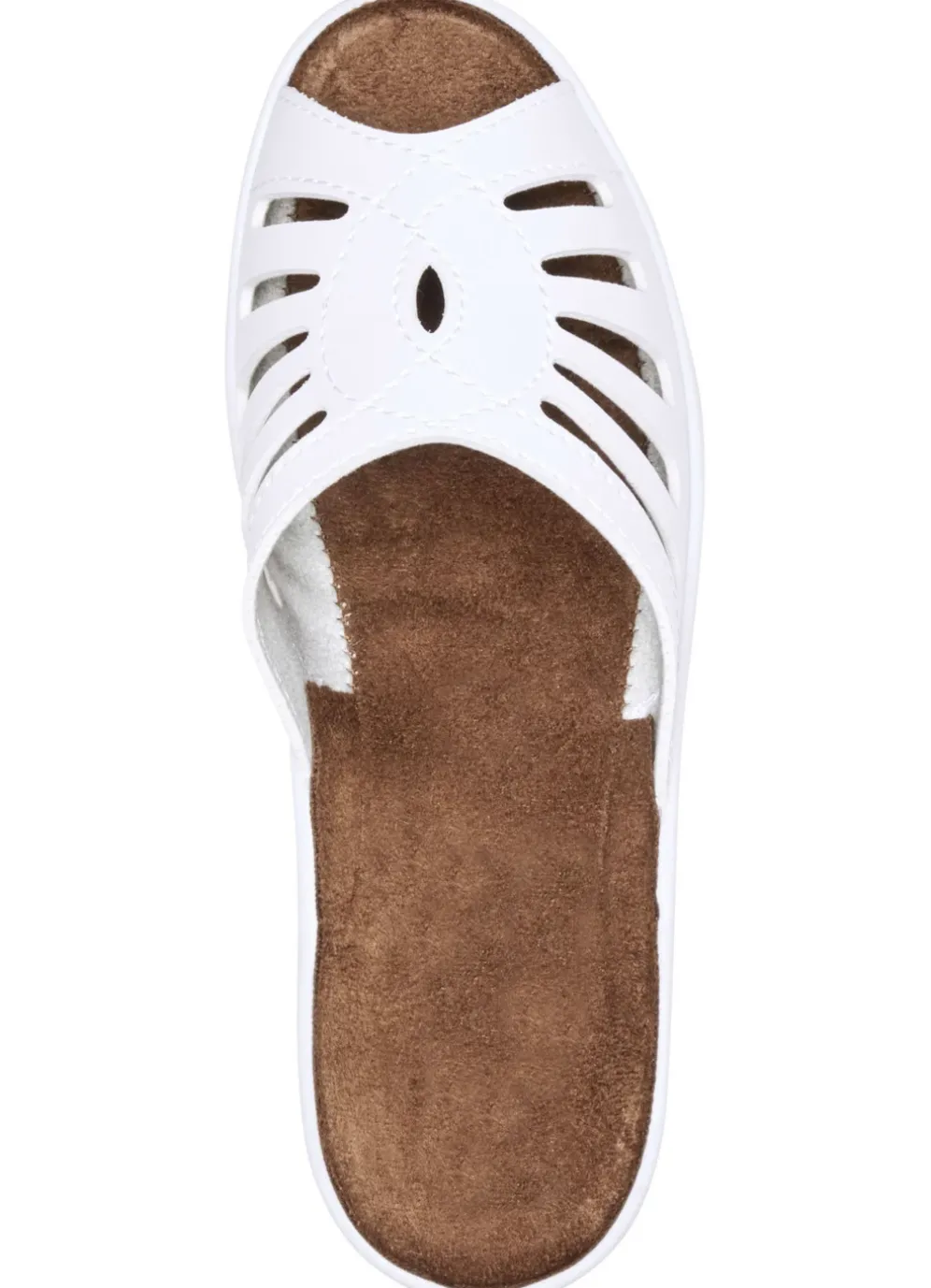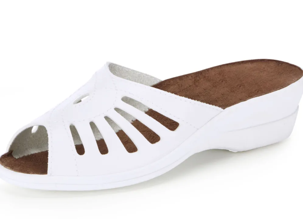 Pantolette mit Zierlochung in Weiss und in Größe 36.