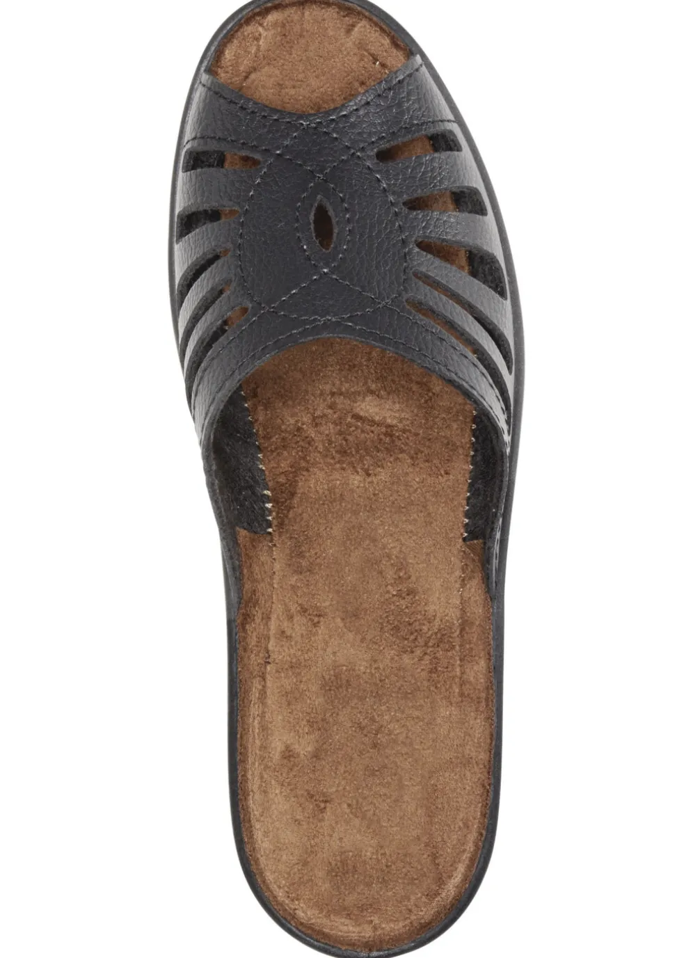Pantolette aus Synthetikmaterial: in Weite G, Zierlochung, Textilfußbett, leichte PVC-Riffelsohle sowie 35 mm Keilabsatz