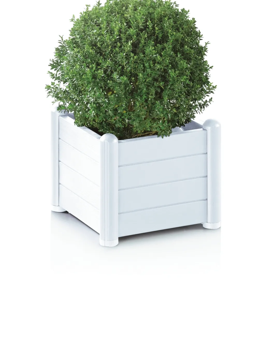 Pflanzkasten aus wetterbeständigem Kunststoff in der Ausführung Pflanzkasten klein und in Weiss.