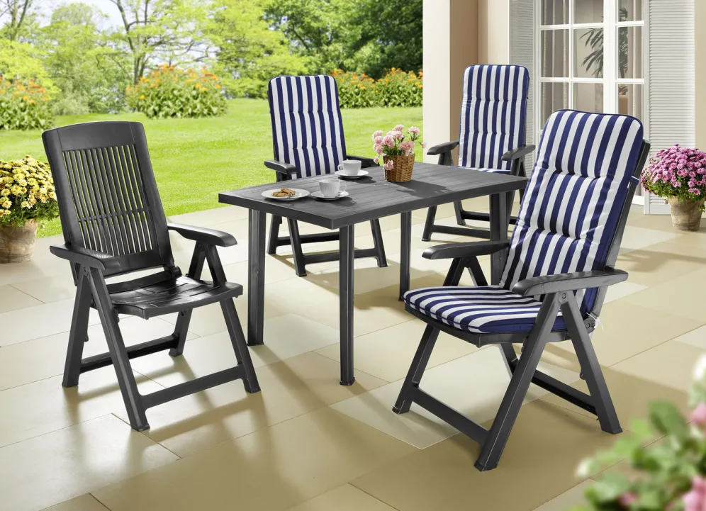 Vielseitig, bequem und praktisch. Ideal für Garten, Balkon oder Terrasse. Aus Kunststoff (PP), pflegeleicht und wetterfest. Tische mit Aufbau-Anleitung