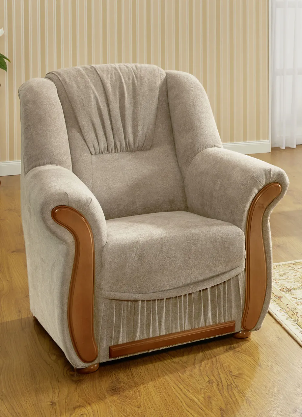 Sehr gemütliche Polstermöbel zum Entspannen und Wohlfühlen! Auf stabilem Holzgrundgestell, mit hochwertigem Bonellfederkern und Komfortschaum-Polsterung gearbeitet sowie mit angenehmem Stoffbezug (100% Polyester) versehen.