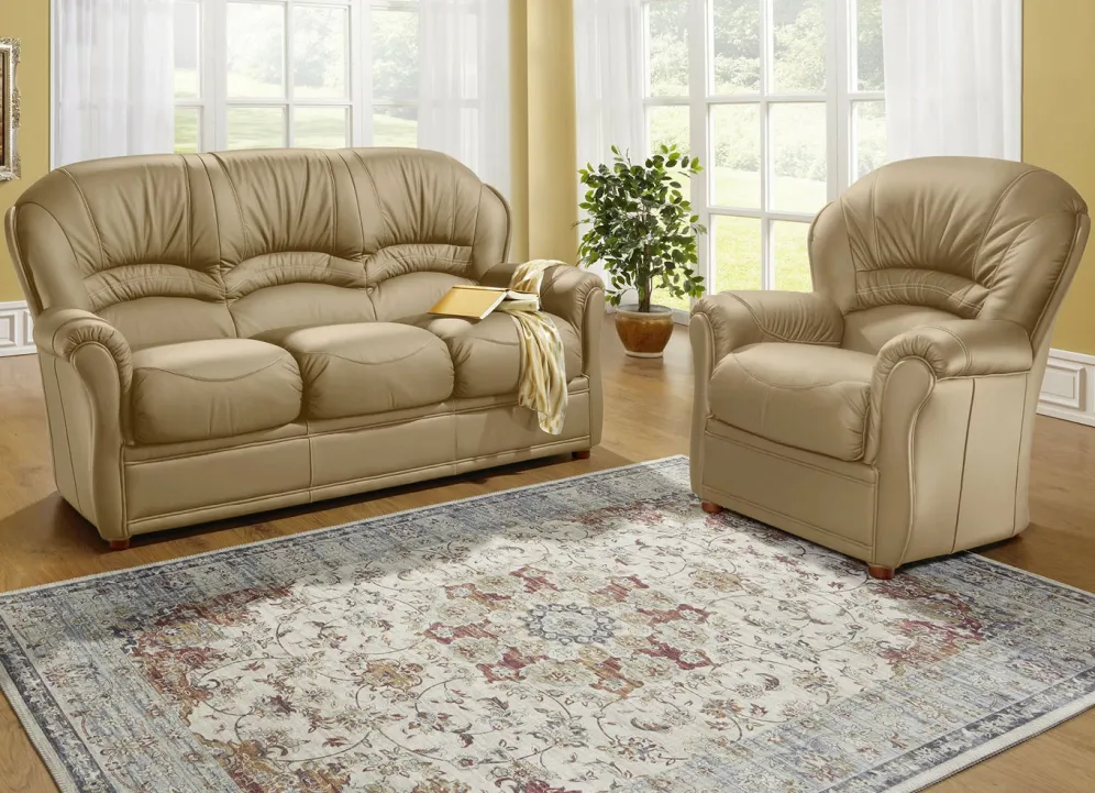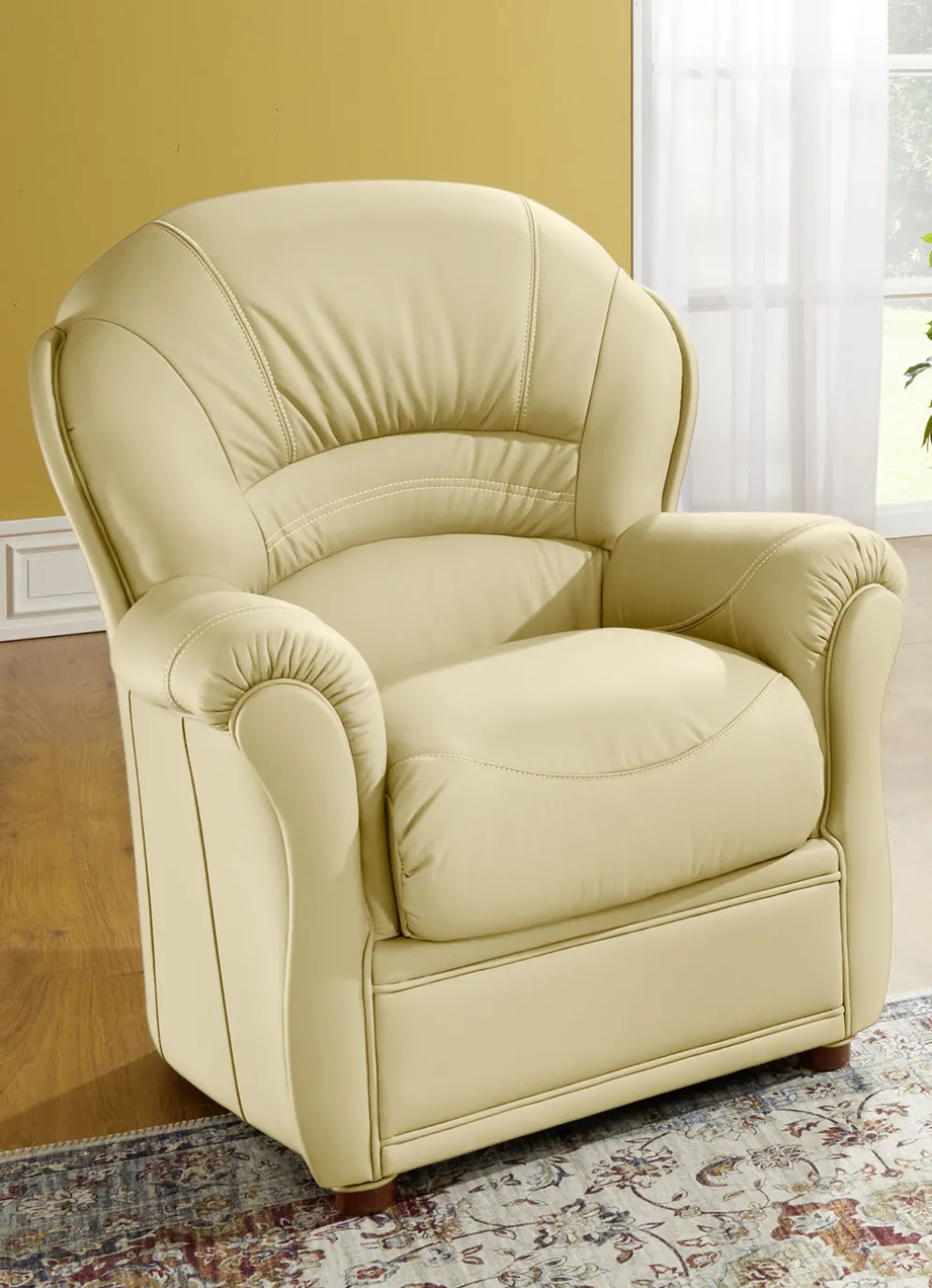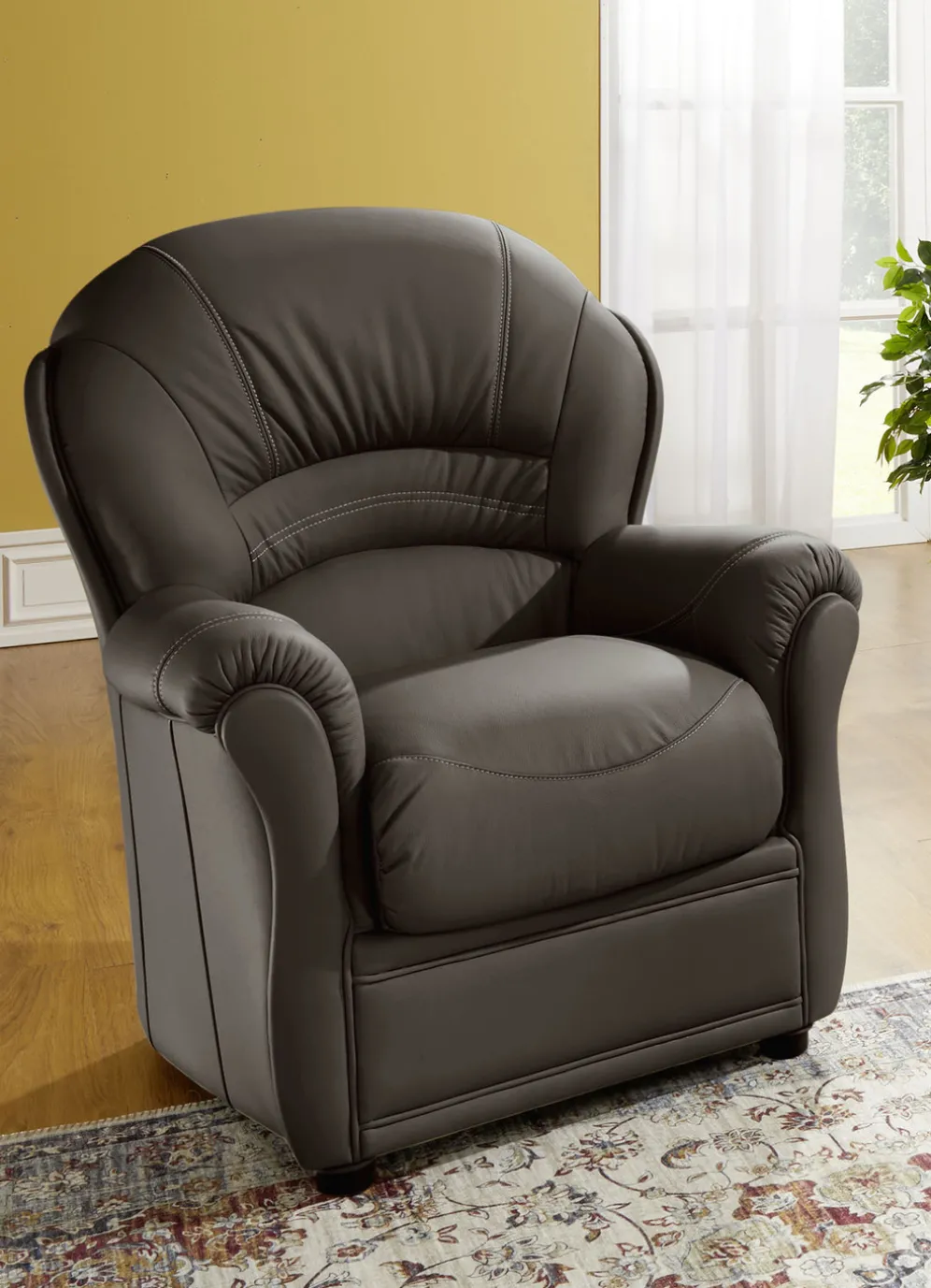 Polstermöbel mit Bezug aus echtem Leder in der Ausführung Ledersessel und in Taupe.
