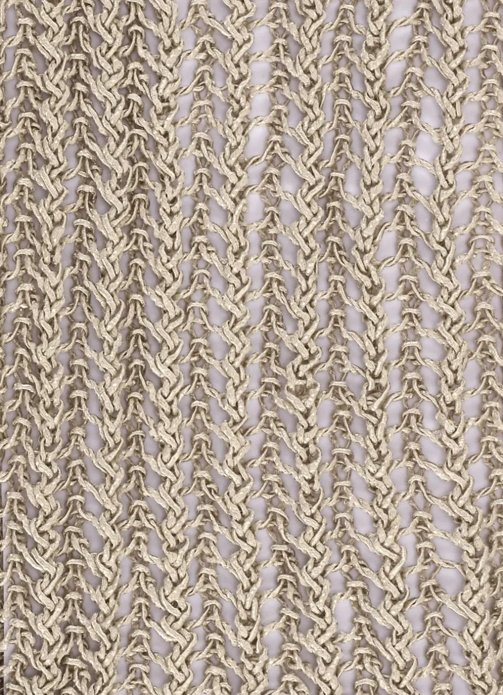 Erstklassiger Pullover mit Ajourmuster in Sandbeige, edlem Glanz und Melange-Effekten allover, rundem Halsausschnitt sowie langen Ärmeln.