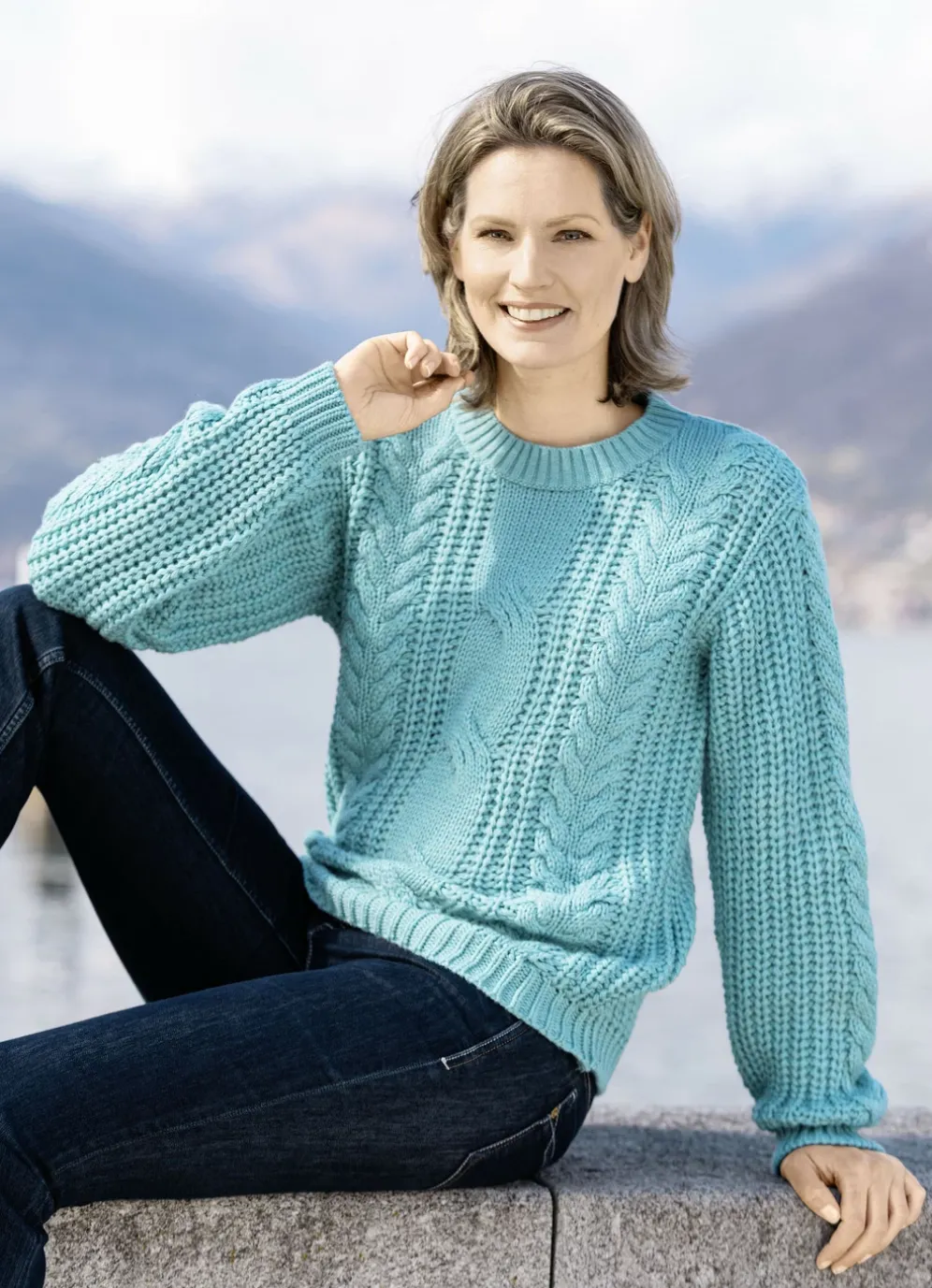 Pullover mit Zopf- und Flechtmuster