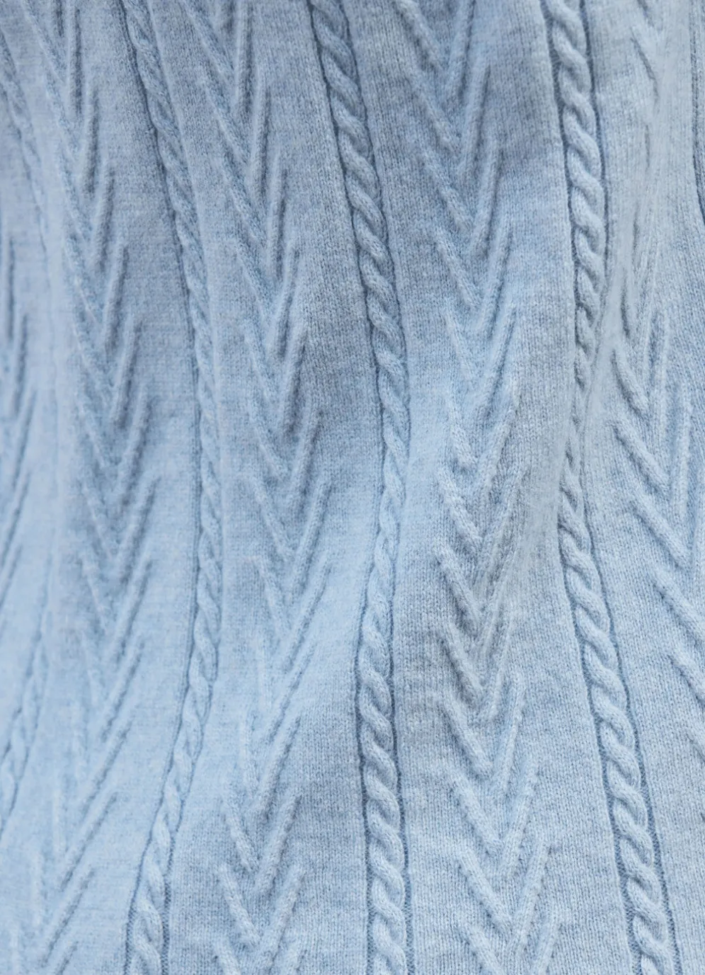 Herrlicher Pullover von STILSCHMIEDE mit zarter Zöpfchenstruktur allover, Stehbund, modischer, leicht überschnittener Schulterpartie, 3/4-langen Ärmeln sowie Rippenbundabschlüssen.